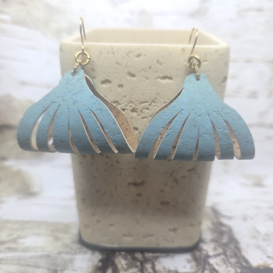 Aqua Cork “Fan” Earrings
