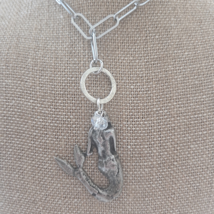 - Materials: Pewter mermaid. Paperclip chain